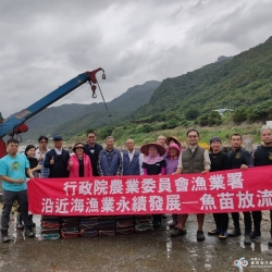 海漁基金會在放流魚苗的...